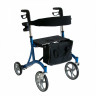 Конструкция ролятора с повышенной грузоподъемностью выполнена из стали с полимерным покрытием, сиденье обшито искусственной кожей. Ролятор оборудован двумя ручными тормозами задних колес c фиксирующей функцией, расположенных на ручках конструкции. Ручки имеют рифленую форму и не скользят в ладонях; регулируются по высоте. Под сиденьем закрепляется вместительная корзина для личных вещей и продуктов. Опору для спины можно отсоединить, если ролятор не используется в качестве стула. Ролятор складывается и не занимает много места дома или при транспортировке.