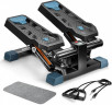 Министеппер с черными эспандерами DFC DAEYEGIM — это компактный и эффективный тренажёр для домашних кардиотренировок, направленных на укрепление мышц ног, ягодиц и нижней части корпуса. Благодаря встроенным эспандерам длиной 89 см, вы также можете задействовать мышцы рук и плечевого пояса, делая тренировку более комплексной. Степпер оснащён гидравлической системой нагрузки, которая обеспечивает плавный и тихий ход педалей. Вы можете механически регулировать уровень нагрузки, подстраивая интенсивность тренировки под свои цели и физическую подготовку. Максимальный вес пользователя — 110 кг, что делает тренажёр универсальным для большинства пользователей. Благодаря компенсаторам неровности пола, степпер стабильно стоит даже на неидеальных поверхностях, а широкие педали размером 10,5 х 30 см с рельефным покрытием обеспечивают уверенное сцепление с обувью и безопасность во время занятий. На монохромном LCD-дисплее отображаются все ключевые параметры: время тренировки, количество шагов, шагов в минуту и сожжённые калории. Это позволяет легко отслеживать прогресс и контролировать эффективность каждого занятия. В комплекте 1 батарейка типа LR44. Компактные размеры в рабочем виде — 41 х 20 х 29,5 см — делают этот тренажёр идеальным выбором для занятий в квартире или офисе. Министеппер DFC DAEYEGIM не требует подключения к сети, легко помещается под кровать или в шкаф и готов к тренировке в любое время.