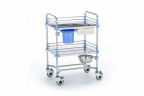 • Стальной каркас тележки быстро разбирается, соединения обеспечивают жёсткость конструкции в собранном виде. Покрытие соответствует всем санитарно-гигиеническим нормам, оно долговечно и без проблем дезинфицируется любыми средствами.